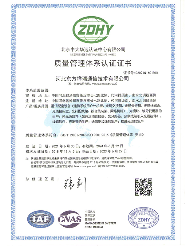 质量管理体系认证证书